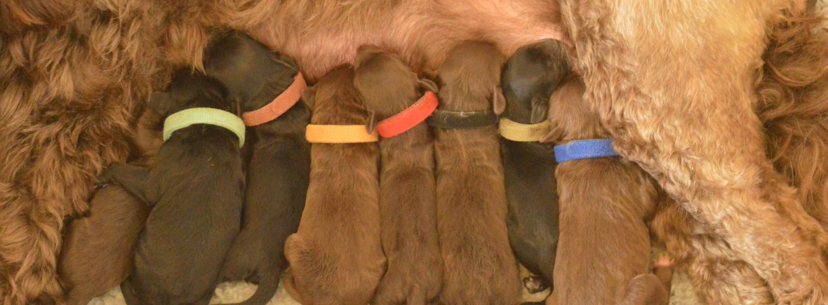 10 puppies born: 7 males (4 brown/3 black) and 3 females (2 brown /1 black)